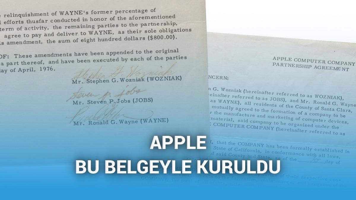 Teknoloji tarihinin en simgesel şirketlerinden Apple’ın 1976’daki kuruluş belgeleri açık artırmayla satılacak. Belgede Steve Jobs, Steve Wozniak ve Ron Wayne’in imzaları yer alıyor.
