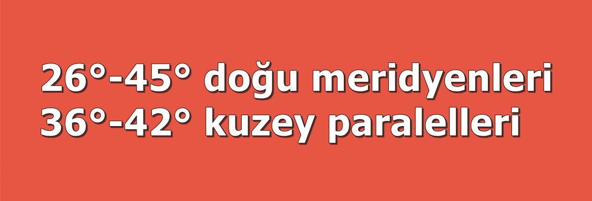 - 26°-45° doğu meridyenleri, 36°-42° kuzey paralelleri