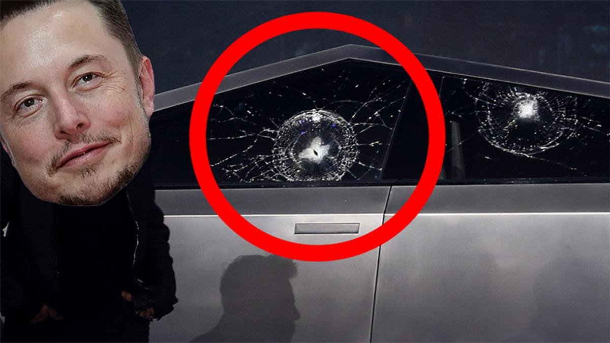 Bilindiği gibi lansmanda aracın camlarının kırılmaz olduğu belirtilmişti ancak sıra bunu denemeye geldiğinde işler Tesla'nın planladığı gibi gitmedi. Elon Musk, Twitter hesabından yaptığı açıklamada cam testinden önce yapılan balyoz testinde aslında camın alttan kırıldığı dolayısıyla demir bilyenin camı kırmadığını söyledi.