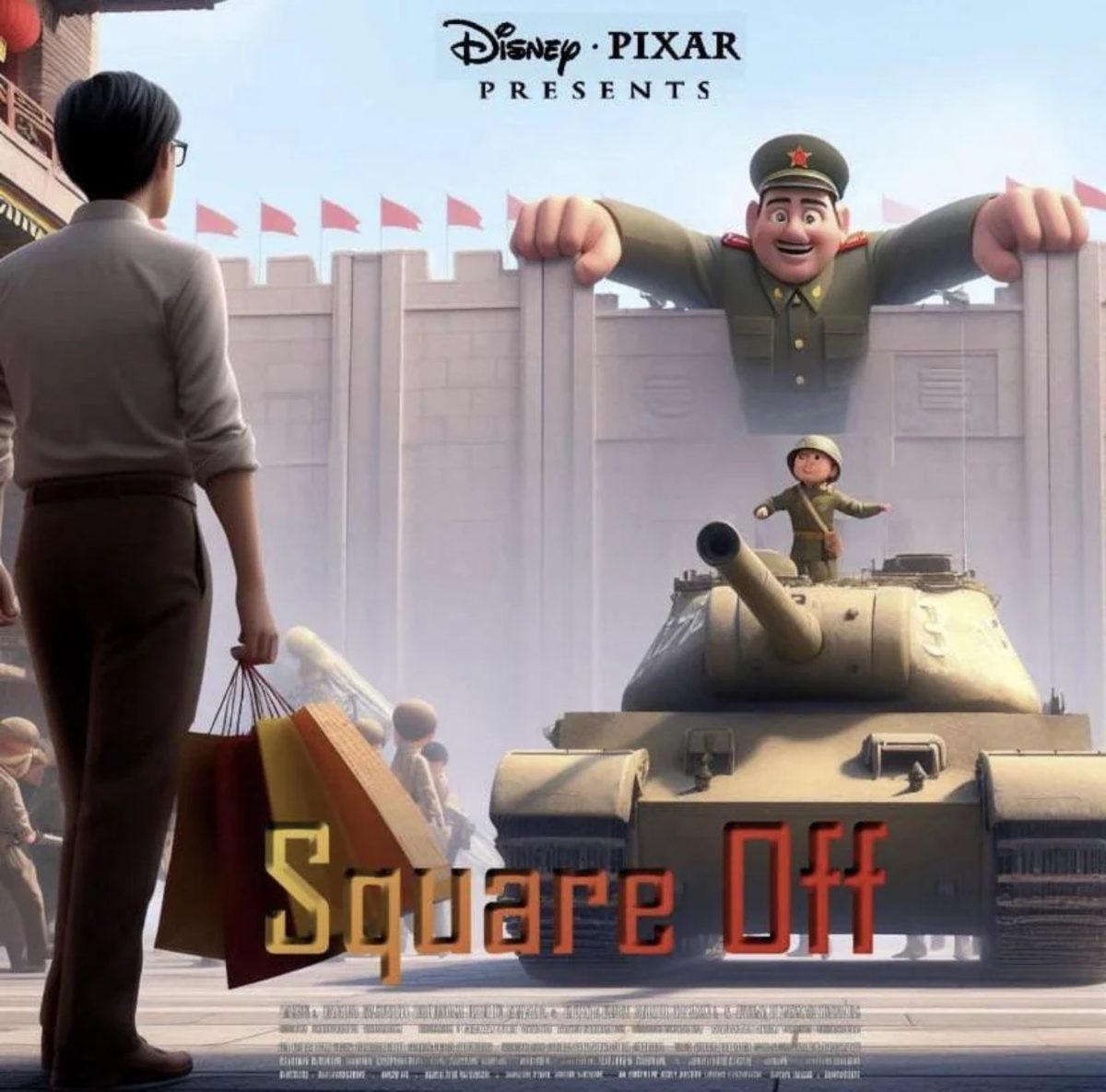Tiananmen Meydanı olayının Disney grafikleriyle resmedilmiş hâli: