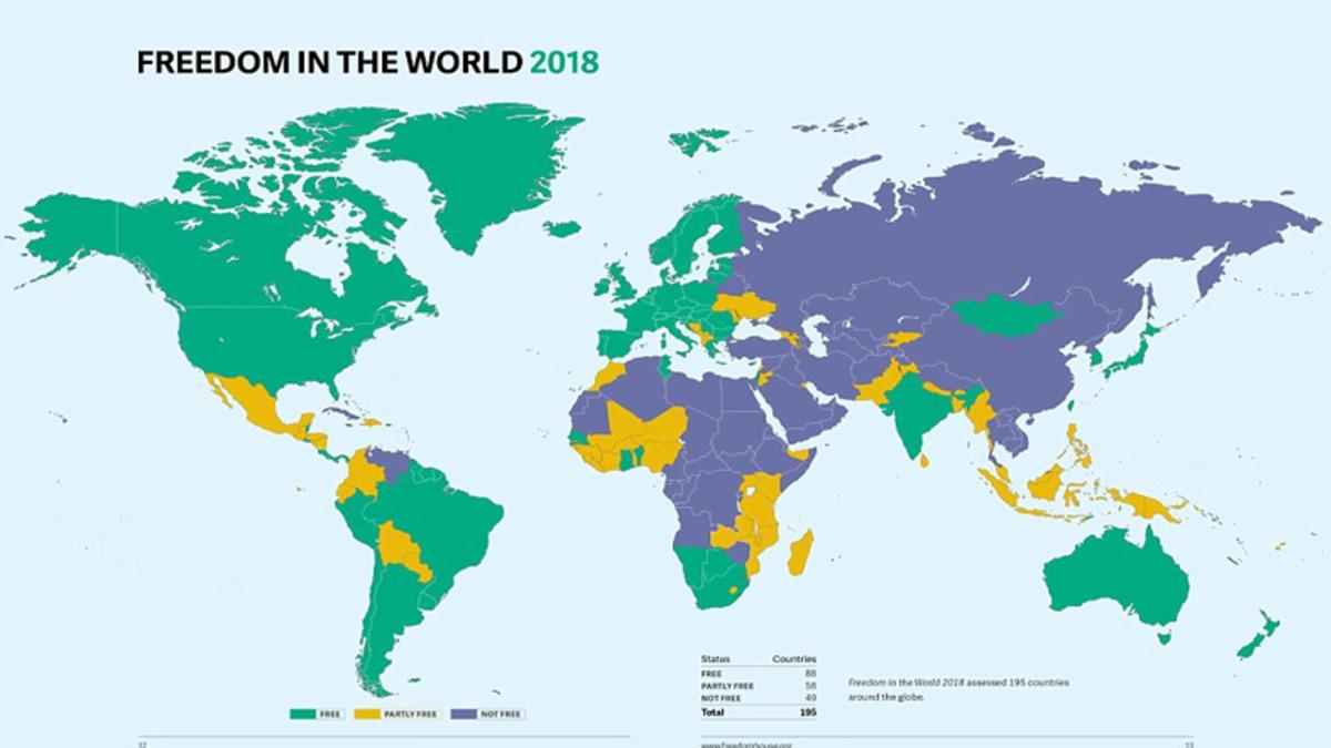 Her yıl düzenenlen Freedom in the World çalışmasının 2018 yılına ilişkin verileri yayınlandı. Ülkeler farklı kriterlere göre objektif bir yaklaşımla değerlendirilerek, “özgür, kısmen özgür ve özgür değil” olmak üzere 3 farklı gruba ayrıldılar.