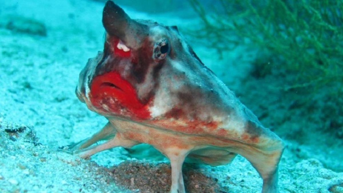 Kıpkırmızı rujlu dudaklarıyla ve surat ifadesiyle oldukça komik görünen bu kırmızı dudaklı yarasa balığı;