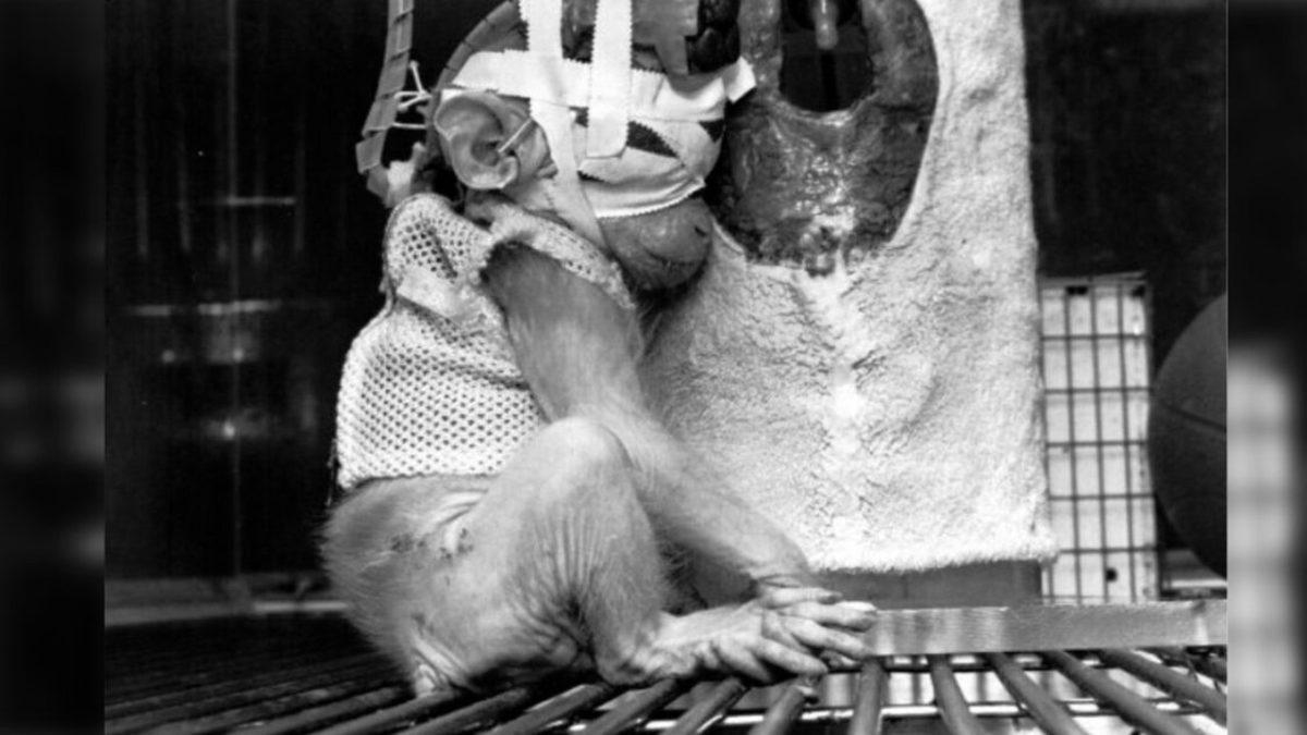 Göz kapaklarının aldığı hasarın yanı sıra kafatasına elektronik sonar takılan maymun, 3 yıl boyunca duygusal yoksunluk deneyine sokulmuştu. Tutulduğu kafeste tek başına olan yavru, anne işlevinin yerine getirilmesi için 2 sahte meme ucuyla bir havlu kaplı cihaza sarılmış halde tutuldu.