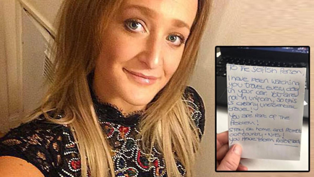 Komşusunun, Halms'in arabasına bıraktığı notta, “Bencil kişinin dikkatine; Her gün aracınla seyahat etmeni izlemekteyim. Üniforma giymiyorsun ki bu da açıkça gösteriyor ki gereksiz seyahat ediyorsun. Problemin bir parçasısın. Evde kal ve ülkemiz ve NHS’yi koru. Seni ihbar ettim.” yazıyordu.
