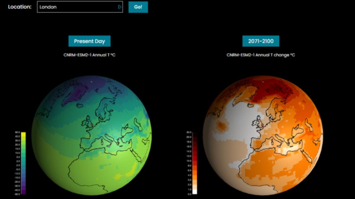 Ücretsiz olarak indirilebilen ESD Research uygulaması, altı büyük küresel merkezden gelen sıcaklık ve yağış tahminlerini alıyor. Bu tahminlere göre gelecekte dünyanın nasıl bir hal alacağını gözlemlemek ve simüle etmek mümkün oluyor.