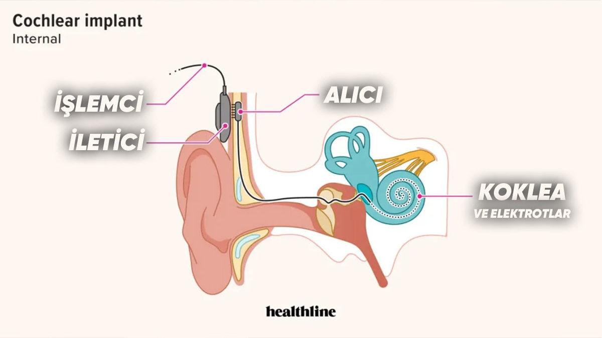 Koklear implant; birinin kafa derisinin içinde, ikisinin de dışında yer aldığı üç parçadan oluşuyor. Mikrofon ve iletici dışarıda bulunurken alıcı kısmı içeride yer alıyor. Koklear implantın uygun görüldüğü kişilerde, gerekli hazırlıklar yapıldıktan sonra ameliyat yoluyla önce kafa derisinin altına alıcı yerleştiriliyor.