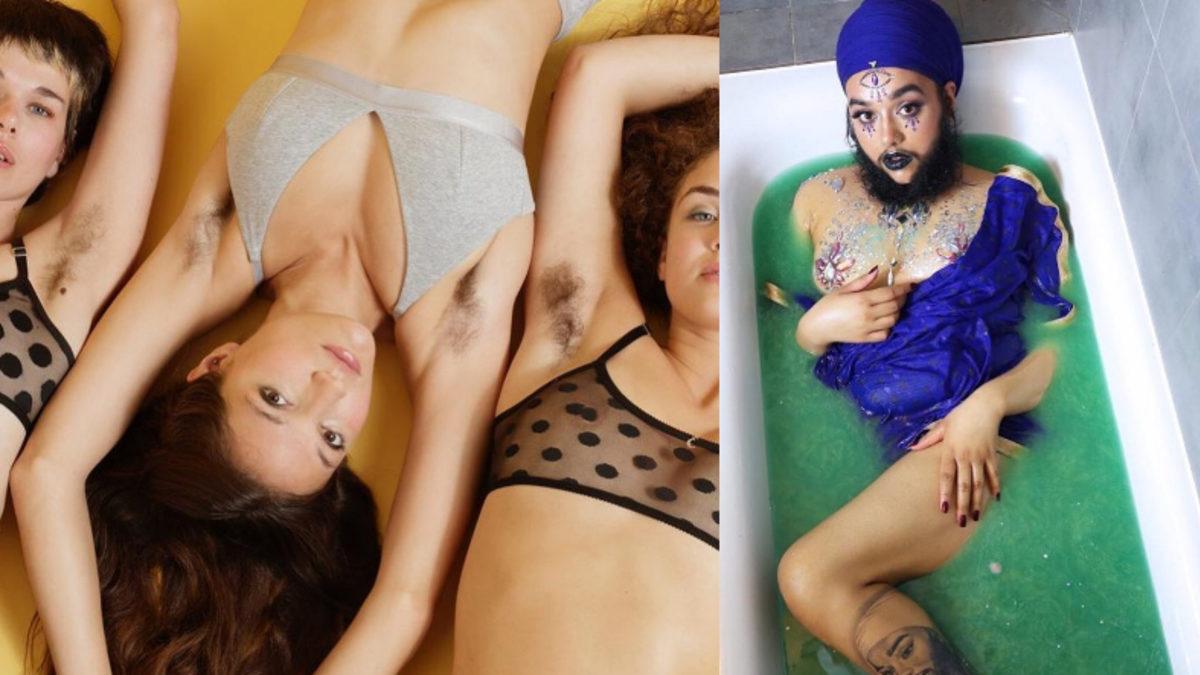 Soldaki görselde "kadınların kıllarından utanmaması gerektiği" yazıyor: