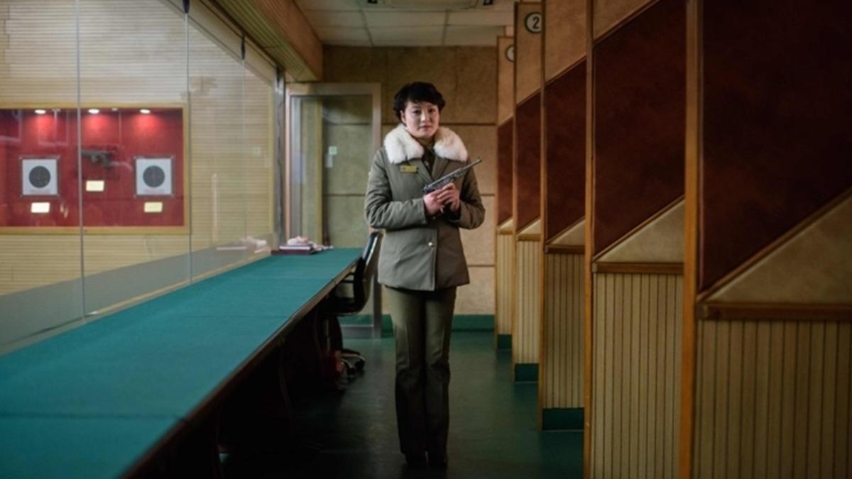 1. Kuzey Kore Pyongyang'da bir kadın asker ve Güney Kore Seoul'de bir erkek asker, poligonda atış yapıyor