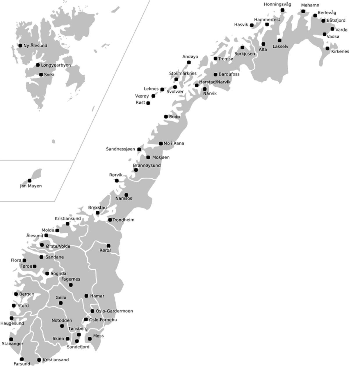 1960’lardan sonra Norveç’te bölgesel havalimanı inşası oldukça arttı. Bunun en önemli sebebi ise kırsal kasabalar ve il merkezleri arasında ulaşımı etkin kılmaktı. Dağlık ve engebeli coğrafyası sebebiyle de kara yolu ulaşımı zorlaşıyordu. Bu yüzden de kısa rotalarda yalnızca küçük uçaklara izin veren birçok küçük havalimanı var.