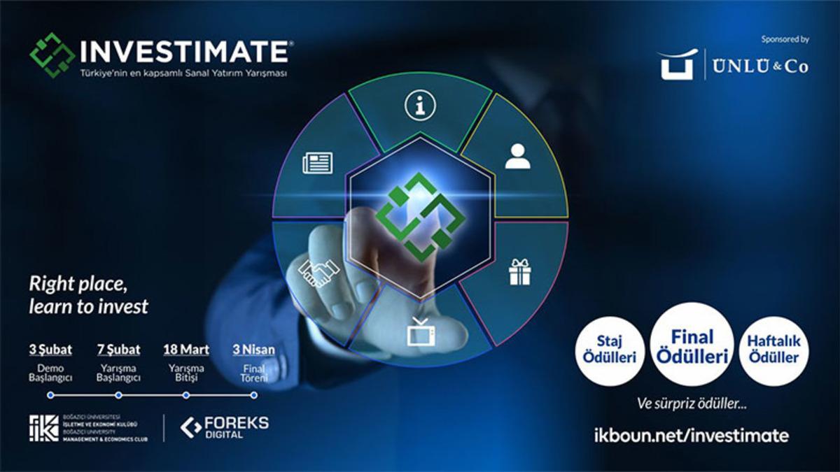 Boğaziçi Üniversitesi İşletme ve Ekonomi Kulübü, bu yıl 7. kez düzenlenecek olan Investimate isimli sanal borsa yarışması ile hem katılımcıları bilinçlendirmeyi hem de onlara kariyer imkanları sunmayı hedefliyor.
