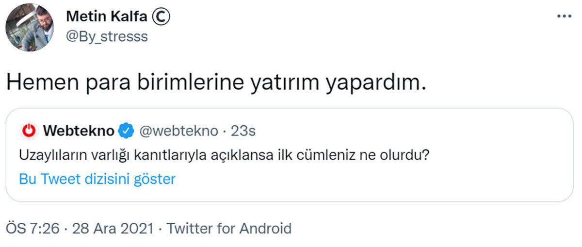 Twitter’da bu sorumuza verilen yanıtların büyük bir çoğunluğu elbette mizahi yanıtlardı. Aralarında pek çok komik yanıtın da bulunduğu o yanıtlardan bazıları şu şekildeydi: