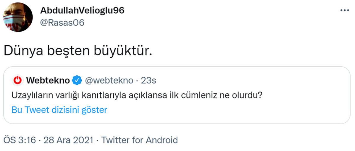 Öte yandan pek çok kişiyse Dünya dışı yaşam düşüncesini gerçekçi bulmuyor. Peki, tarihin ilk günlerinden beri bir tartışma konusu olan bu konu olur da bir gün gerçek çıkarsa, uzaylıların varlığı açıklanırsa ilk cümleniz ya da tepkiniz ne olur? İşte bu sorunun cevabını öğrenmek için, işi biraz da eğlenceye vurarak sizlere bu soruyu sorduk.