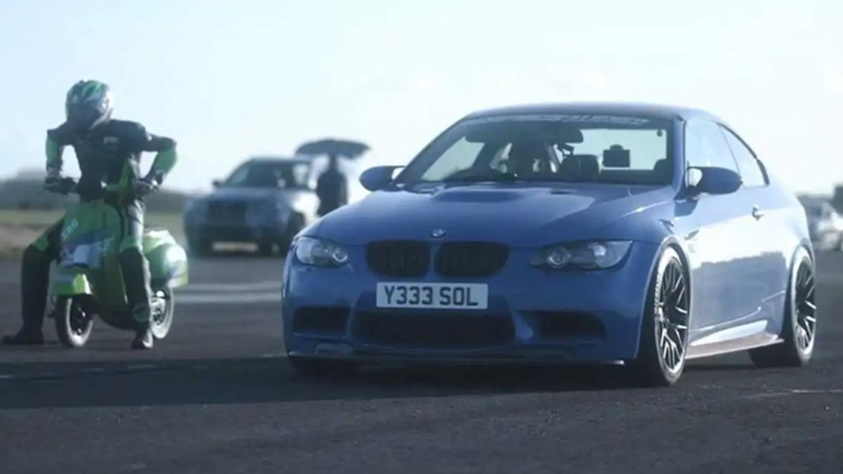BMW ile Vespa scooter, tam 3 kez karşı karşıya geldi. Her üç yarışın kazananı da tahmin edebileceğiniz gibi BMW M3 E92'ydi. Ancak burada dikkat edilmesi gereken bir husus vardı. Öyle ki bu BMW, Vespa'dan 10 kat güçlü olabilirdi. Ancak aynı BMW M3 E92, Vespa'dan tam 10 kat ağırdı. Yani araçların güç/ağırlık oranları neredeyse aynıydı. Araçlar teknik anlamda birbirlerine paralel olsalar da Vespa, Alman canavarı bir türlü geçemedi.
